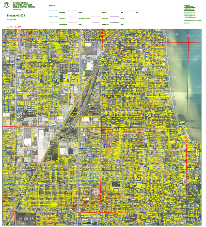 View or print a map of Hillsborough County showing the section township range grid. (You must have Adobe Acrobat Reader to view this pdf file.) This map contains links to printable 11x17 draft maps of each section.